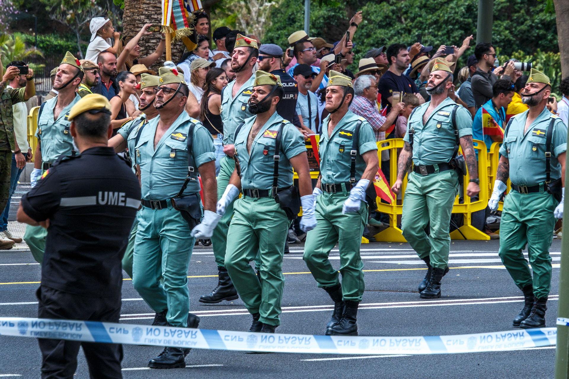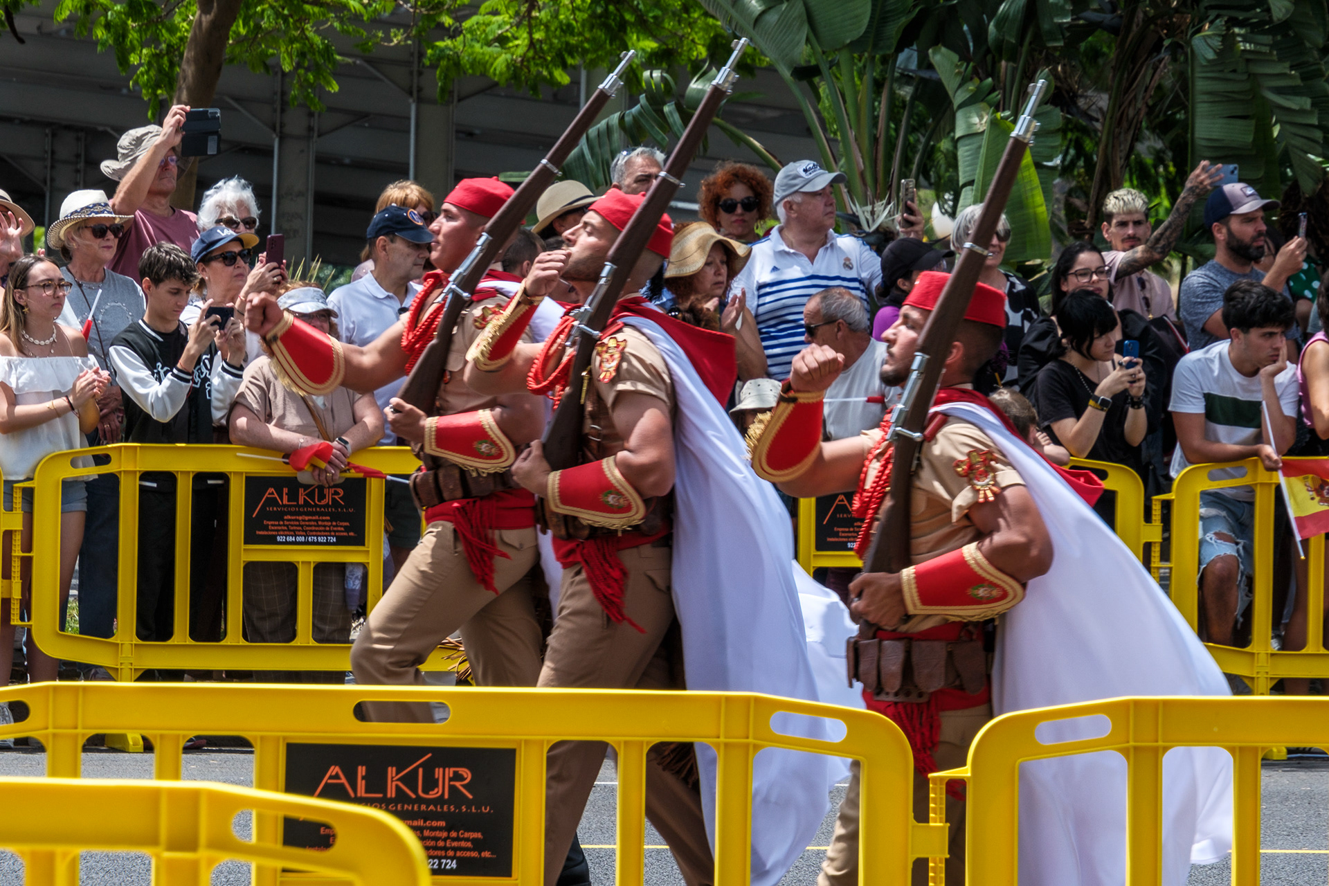 Ein besonderes Highlight war die Teilnahme der Spanischen Legion, die mit ihrer neuen Maskottchen-Ziege "Camarón" auftrat. Diese Tradition, Tiere in Paraden einzubeziehen, hat historische Wurzeln und wurde von den Zuschauern mit Begeisterung aufgenommen.