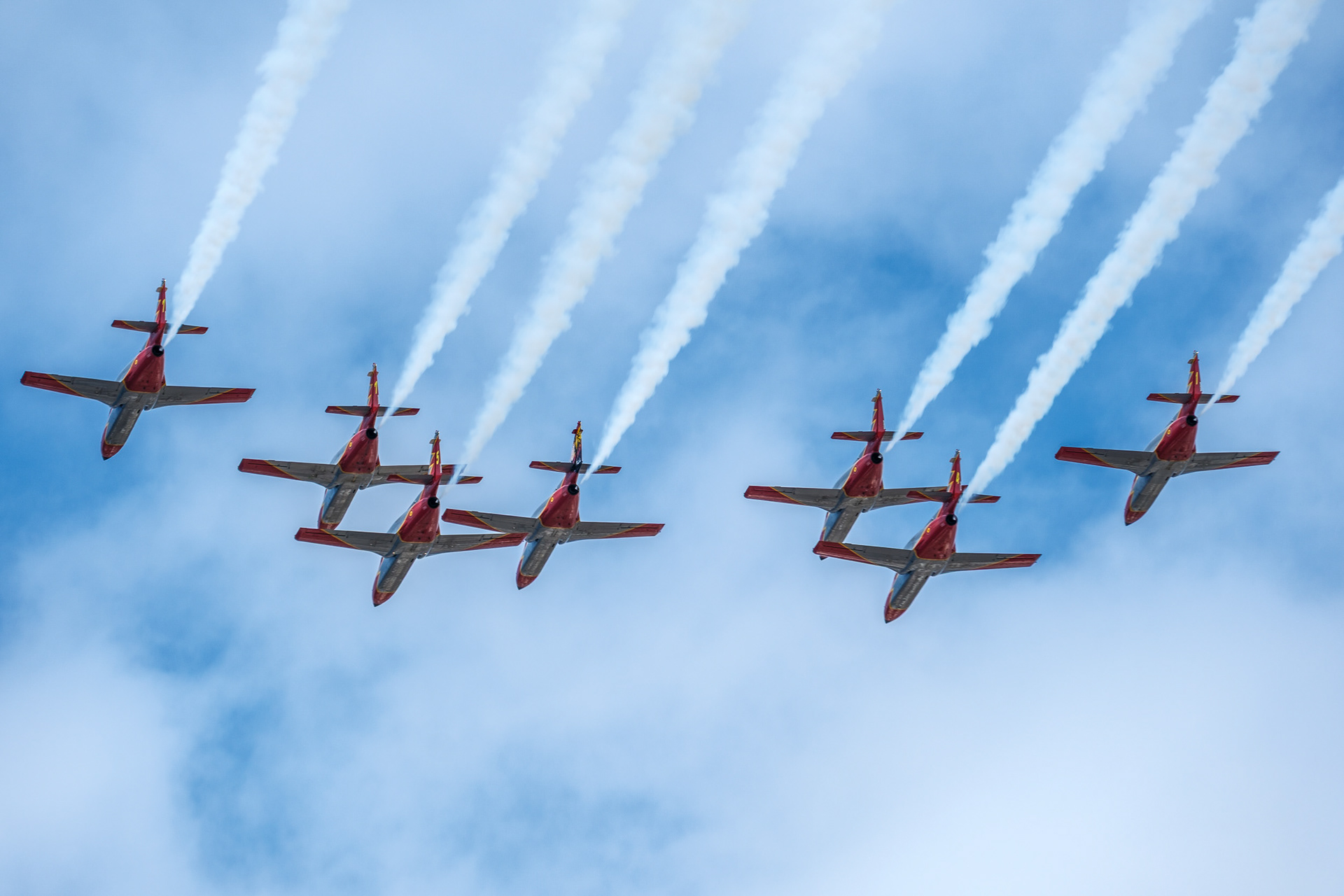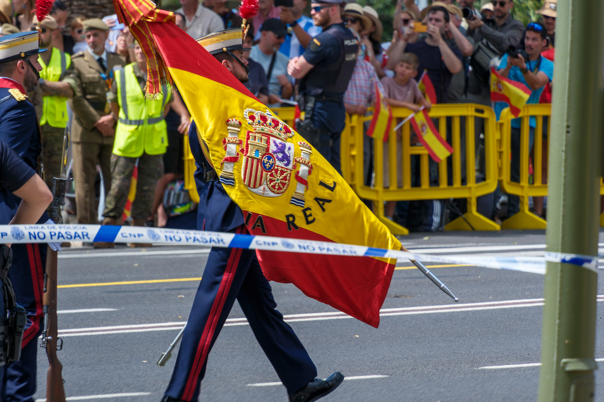 Die Veranstaltung begann mit einem Fallschirmsprung der PAPEA-Einheit, die eine 15 kg schwere spanische Flagge entfaltete. Anschließend präsentierten 45 Flugzeuge, darunter Eurofighter, F-18 und Harrier, sowie 21 Hubschrauber, eine beeindruckende Flugshow. Am Boden marschierten 3.266 Soldaten, darunter 425 Frauen, begleitet von 67 Fahrzeugen und 33 Motorrädern.